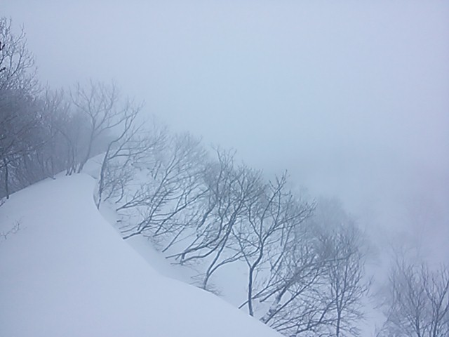 After two sunny days the 2 to 3 metres of snow on Mt. Hachikoku has hardened up.