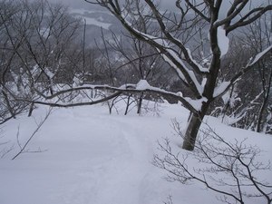 そうこうしているうち、御年輩の女性に抜かれる。(昨日は私がラッセルした、4時間もかかったのよ、ほほほ)恐るべし、恐るべし。田部井氏をしのぐスーパーレディなんであろう。